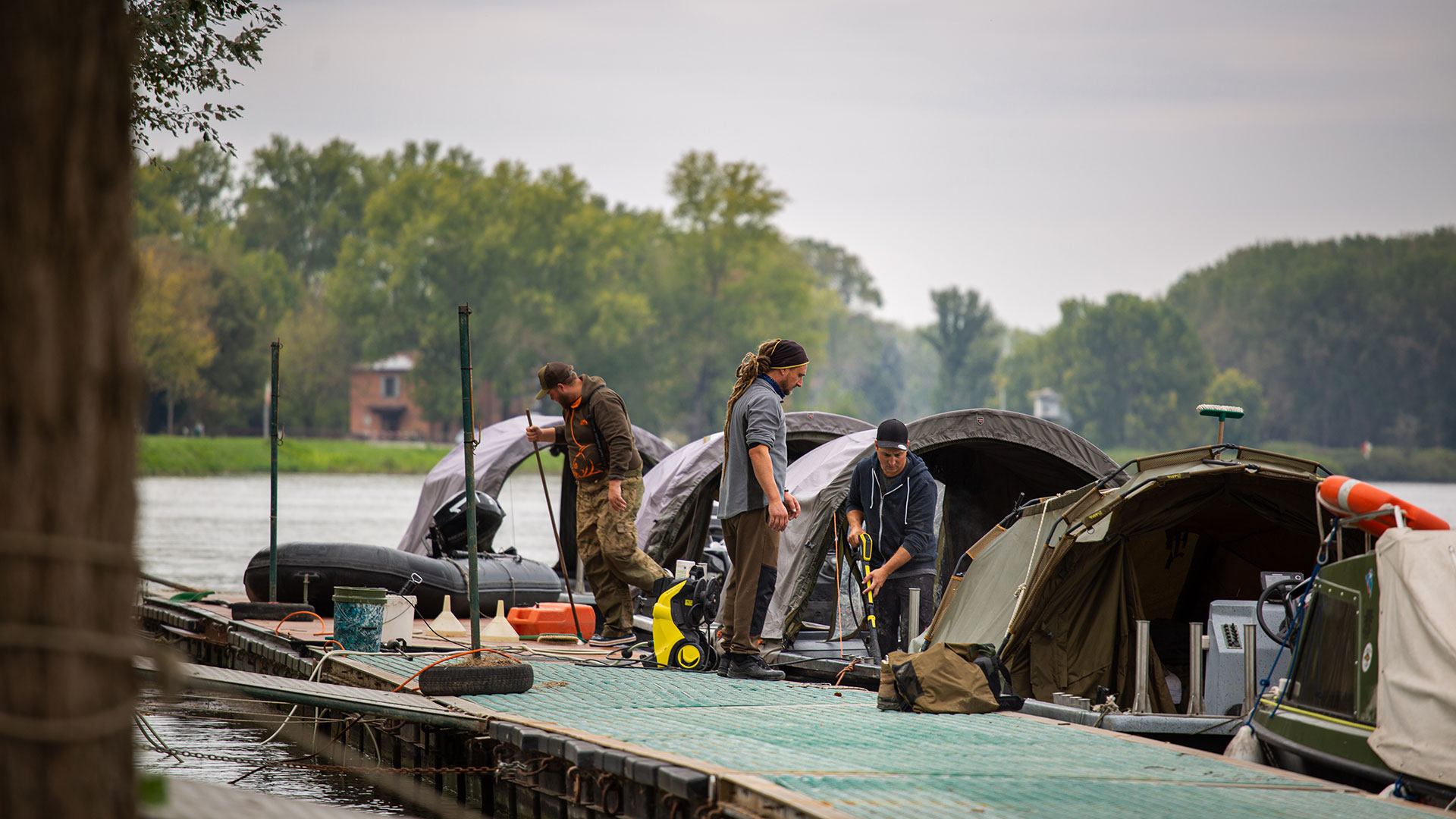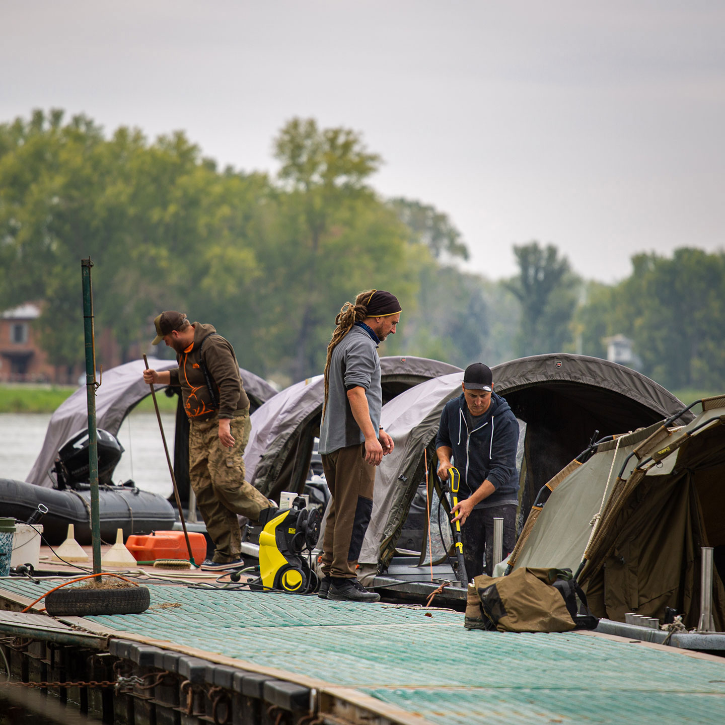 Samstags ist immer großer An- und Abreisetag im Camp… „Grande Casino“ sage ich immer. Die einen Gäste wollen so schnell wie möglich die Heimreise antreten und die anderen stehen schon in den Startlöchern und sind heiß drauf endlich ihr Boot zu bekommen. Alles muss schnell gehen… Das Reinigen des Bootes nach einer Woche angeln am Po geht jedem auf den Sack, um es mal unverblümt auszudrücken. Fehlt es noch dazu an geeigneten Utensilien wird es richtig mühsam, das weiß ich aus eigener Erfahrung. Aber SERVICE wird groß geschrieben bei mir in der Waller-Welt 2.0, deshalb stelle ich meinen Gästen stets genügend Reinigungsmaterialien zur Verfügung, unter anderem zwei leistungsstarke Hochdruckreiniger, mit denen das Putzen der Boote schnell und effektiv von Statten geht.