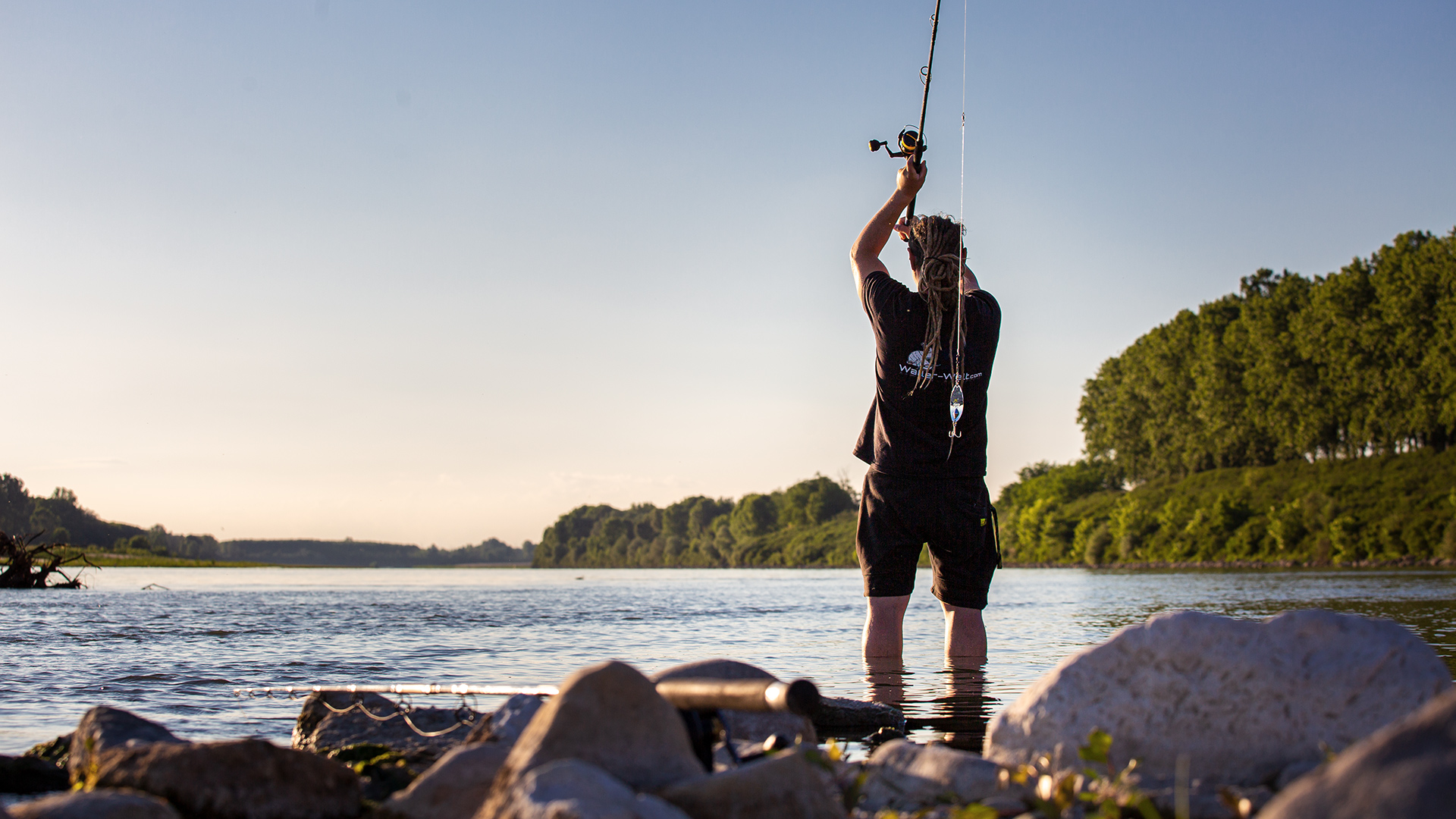 Eine Spinnrute sollte sowohl eine gefühlvolle Spitze als auch ein kräftiges Rückgrat aufweisen. Zu sensibel darf die Angel aber auch nicht sein, da man bei einem Biss den Anschlag gut durchbringen muss. Auch wenn man beim Spinnen nicht unbedingt gezielt auf Großwelse angelt, kann es natürlich immer sein, dass ein brachialer Waller einsteigt und die Rute sollte so ausgelegt sein, dass man jeden Fisch, egal ob groß oder klein, sicher landen kann. An Spinnködern gibt es verschiedenste Gummifische, Blinker, Wobbler, etc. Hier kann ich euch keinen speziellen empfehlen, denn wenn der Wels in Fresslaune ist, ist es ihm meist ziemlich egal, was er sich reinballert :-). Viel wichtiger ist meiner Meinung nach das richtige Timing beim Spinnen.