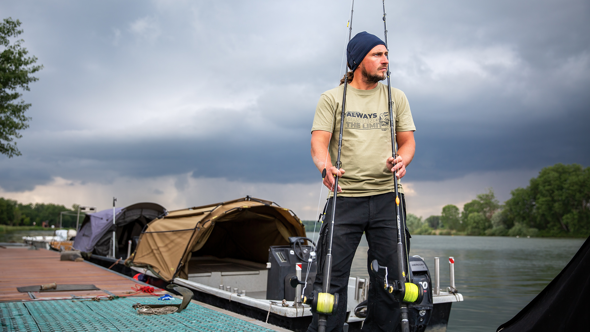 Was darf am Boot eines Wels Anglers nie fehlen? Genau… Eine fertig präparierte Spinnrute! Sobald man an der Oberfläche Fischaktivität wahrnimmt bzw. einen Waller rauben sieht oder hört – sofort ein paar Würfe mit der Spinnrute machen! Hier am Steg in meinem Camp, der Wallerwelt 2.0 am Po Oberlauf, tummeln sich immer wieder mal unsere gebartelten Freunde herum und mit etwas Glück und dem richtigen Köder läßt sich auch der ein oder andere abgreifen… Im Sortiment von Black Cat findet ihr jede Menge Spinner, Blinker, Wobbler und Gummifische in verschiedenen Ausführungen. Die Gummiköder Shad Worm und Curly Worm wurden speziell von meinem Kollegen Stefan Seuß entwickelt. Diese zeichnen sich durch sehr attraktive Laufeigenschaften aus, denen kaum ein Wels widerstehen kann 🙂