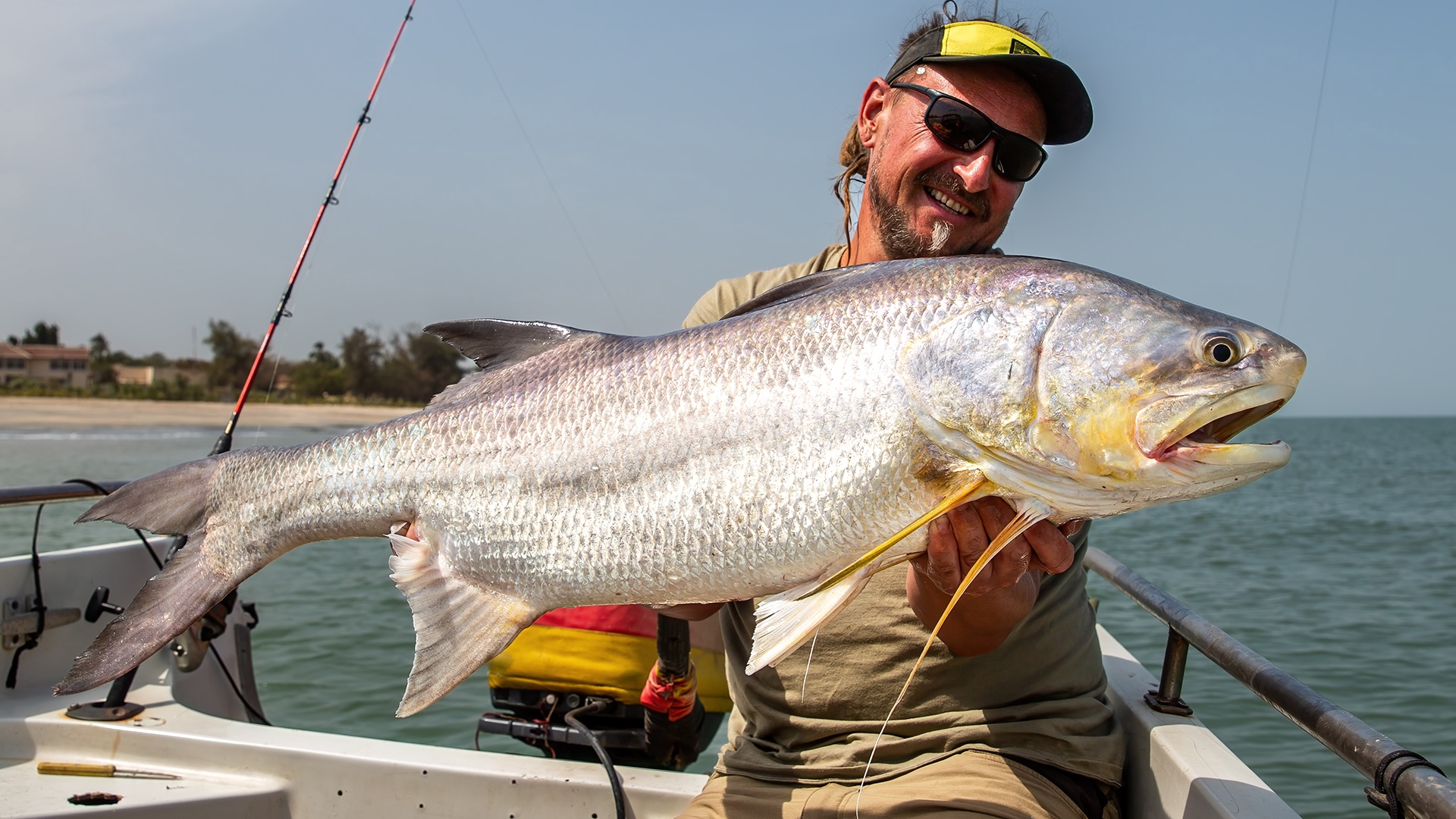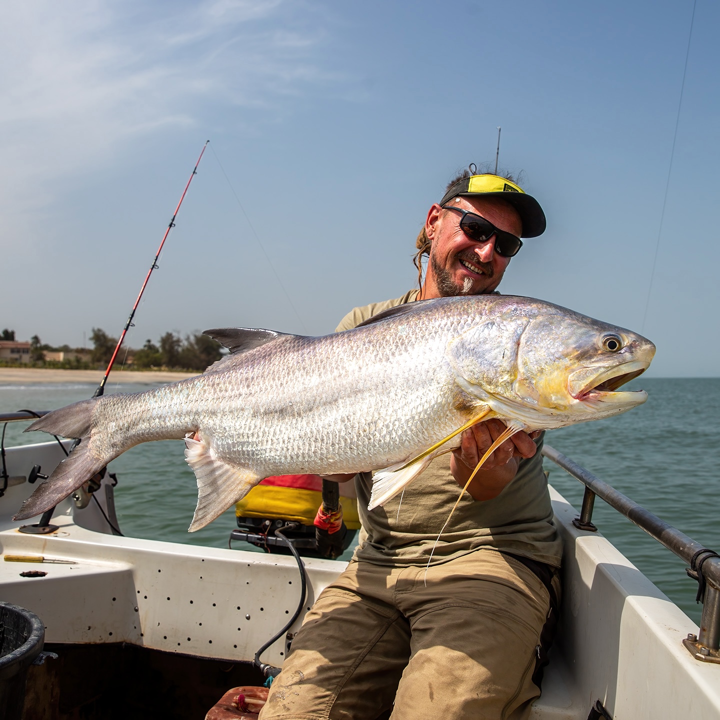 Im Zuge eines Urlaubes in Westafrika vergangenen Januar habe ich die Gelegenheit ergriffen und zwei Tage angeln gebucht. Am Programm stand eine Kombi aus tarpon fishing im Mündungsbereich des Flusses Gambia und Riffangeln vor der Küste Gambias. Der atlantische Tarpun zählt schon seit vielen Jahren zu meinen begehrten Zielfischen. Es handelt sich um einen Knochenfisch, der bis zu 2,5 Meter lang werden kann. Er kommt an der westafrikanischen Küste von Senegal bis Angola und in Küstengewässern Ostamerikas vor. Leider hat es nicht geklappt, dass ich einen Tarpon an den Haken bekomme, doch zumindest konnten wir zwei Exemplare des captain fish landen. Auf meinem YouTube Kanal findet ihr übrigens auch ein Video in dem ihr seht, wie so eine Tour in Gambia aussieht, welche Angeltechniken praktiziert werden und wann die beste Zeit zum Angeln ist.